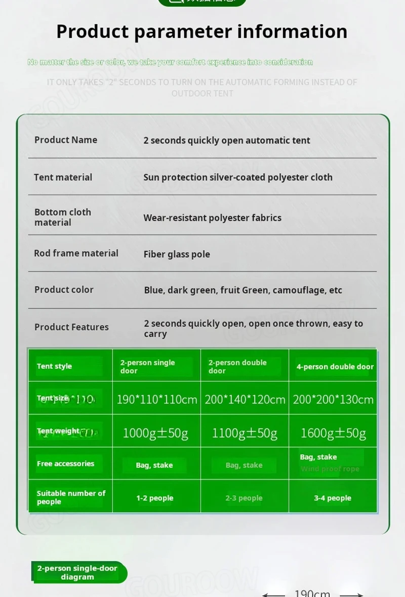 Outside Tent Waterproof Index: 1000-1500 mm